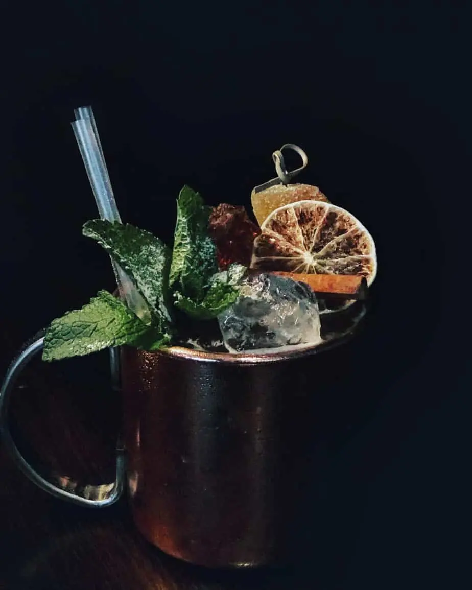 En interessant måde at lave Dark N’ Stormy er også at blande 5-krydderi i rommen og lave gingerbeer fra bunden med carboneret sodavand.